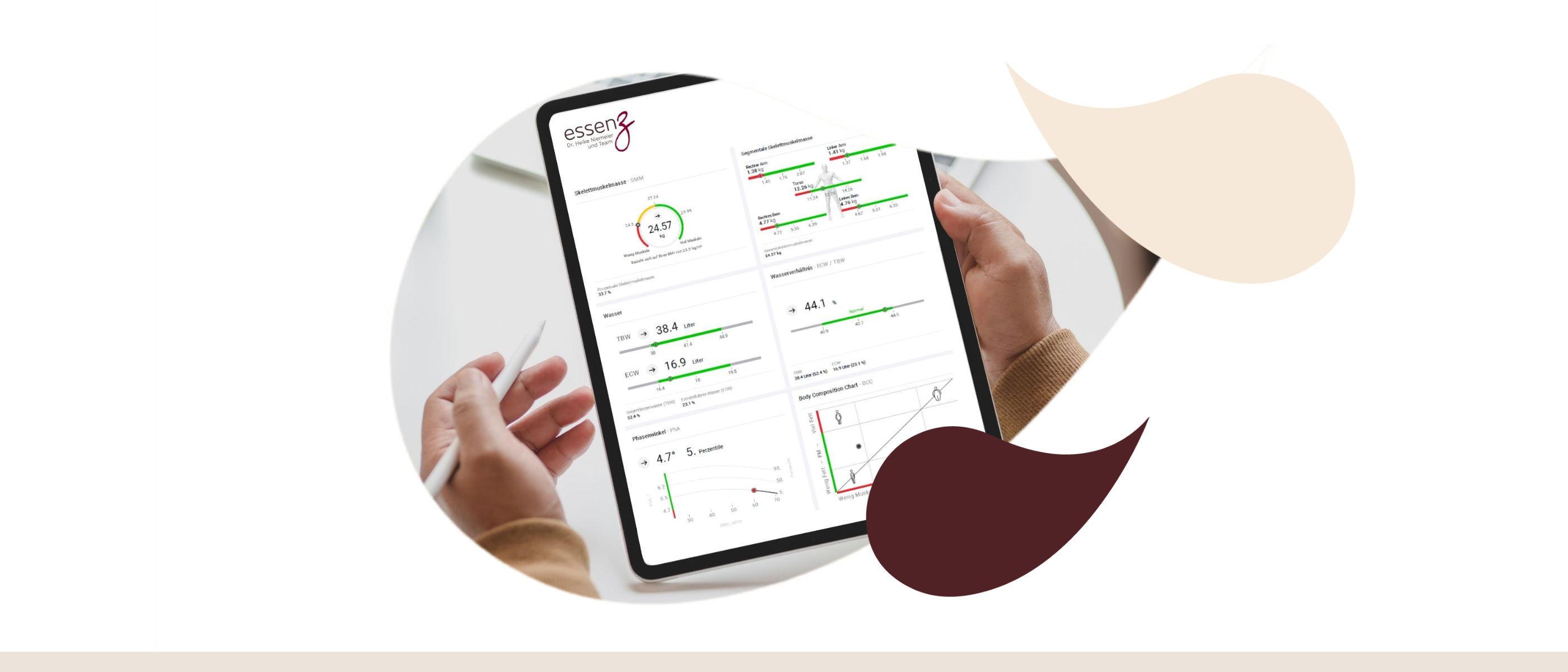 - (Erweiterter) fachlicher Input zu verschiedenen Parametern (z.B. Phasenwinkel, BIVA, BCC, Wasserverteilung, Muskel- und Fettmasse)